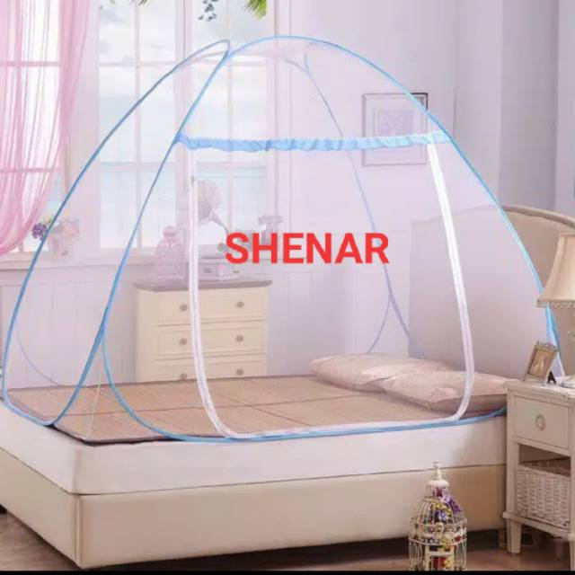 Deskripsi ProdukKelambu Tempat Tidur ini sangat praktis. Pemasangannya tidak perlu tali ikat serta memantek dinding. Anda hanya tinggal memasangnya saja di atas tempat tidur. keterangan produk:ada 3 ukuran : 180 x200, 200 x 200cm dan 160x200bawahnya fullKelambu Praktis dapat dilipat, dibawa & dipasang dimana saja dalam atau diluar rumah tanpa membutuhkan tali. Memberi perlindungan dari nyamuk dan serangga berbahaya lainnya.cara Pemasangan dan lipat sangat mudah dan cepat.Fitur:*Rangka terbuat dari baja kuat elastis fleksibel (anti patah).*Kain kelambu sejuk dan elastis.*Lis warna biru *Desain 2 pintu.*Dapat dilipat hingga lingkaran kecil.*Sudah termasuk tas kelambu.*Packing aman.#shenar #kelambu #kelambuantinyamuk #kelambutidur #shenar #butterfly #weloves