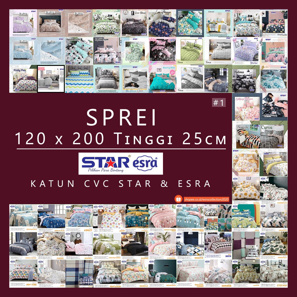 Termurah Perlengkapan di Kabupaten Pacitan [120 X 200 T.25cm] Sprei Esra & Star Katun Cvc Termurah! #1 dari Win's Collection Kota Tangerang Selatan