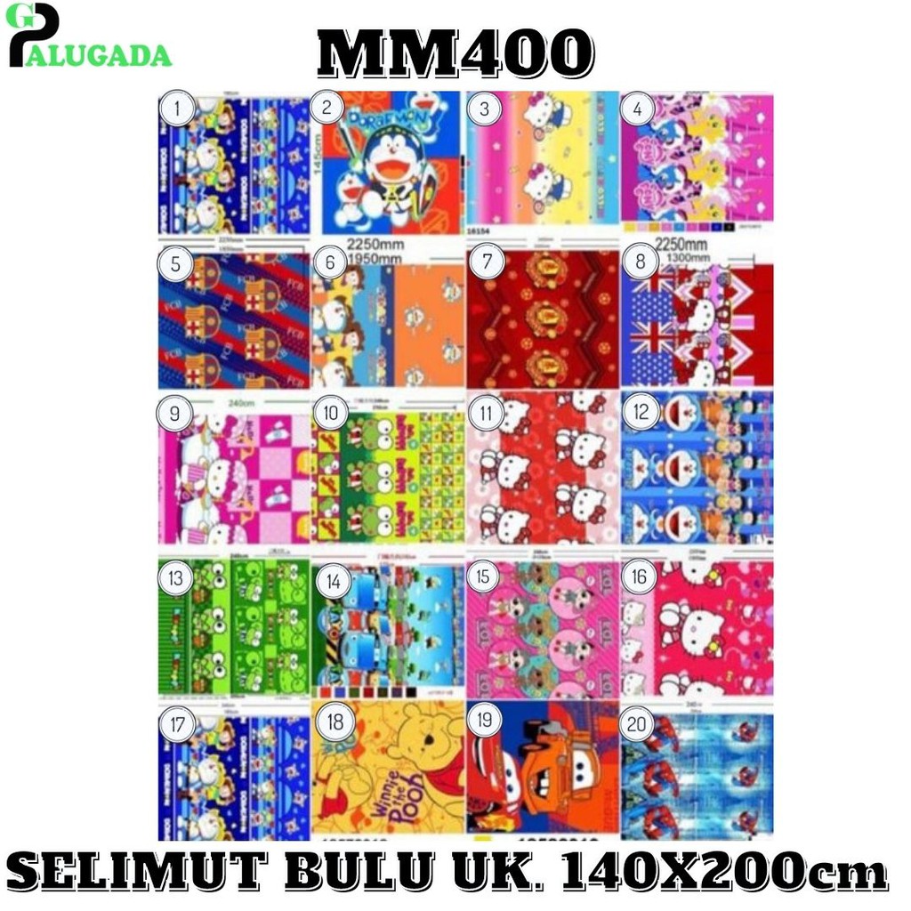 MM400 selimut KARAKTER 140x200cm varian motif IMPORT MURAH BERKUALITAS* selimut bulu halus dan lembut , sehingga enak dan nyaman dipakai * produk import 100%* motif ready sesuai yang ada di foto* ukuran 140x200cm* anti rontok dan mudah dicuci* harga promo terbaik* motif sangat stylish dan menarik* cocok dijadikan kado ulangtahun/pernikahan * UNTUK VARIASI YANG DIORDER MOHON DICANTUMKAN ANGKA YANG DIPILIH , KALAU TIDAK DICANTUMKAN ANGKA KITA KIRIM RANDOM , MEMBELI BERARTI SETUJU#perlengkapan #kamarselimut #selimutimporbuluhalusmurah #perlengkapantidur #selimutbulubulu #perlengkapankamar #selimutimportbuluhalustebal #kamartidur #selimutbulupolos #selimutbulu #selimut #selimutbulupolos200x230PERATURAN COMPLAIN :1.Ketika buka paket harap Barang & Kertas Invoice di Videokan2.Complain yang kami proses hanya melayani di “Pusat Complain “. Tidak melayani “Complain Ma