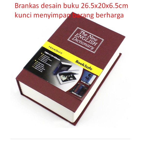 Brankas desain buku 26.5x20x6.5cm kunci menyimpan barang berhargaBrankas ini menyerupai buku bacaan dan tidak ada orang menduga bahwa di dalam buku tersebut anda menyimpan barang berharga atau rahasia dan ketika anda membuka brankas buku ini pun anda menggunakan kun