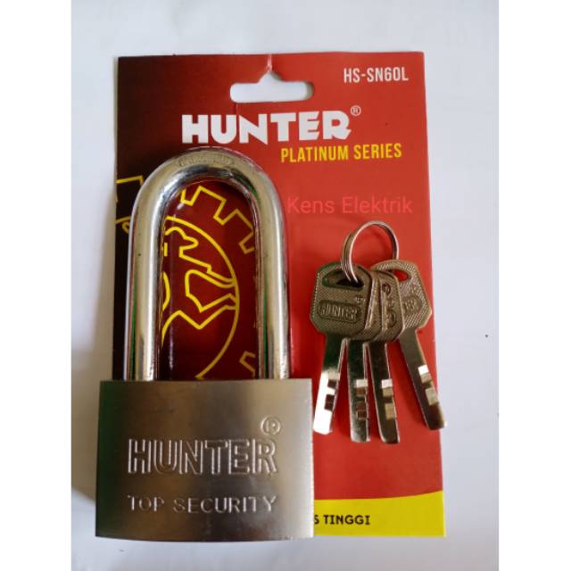 Gembok 60mm Panjang HS-SN60L / Gembok 60mmSize : 60 mmMerk. Hunter atau ATSType. HS-SN60LDalam 1 set terdapat 4 kunciStainless tidak mudah karatBahan kuatLebih aman, karena kunci tidak bisa sicopot dalam posisi gembok ter